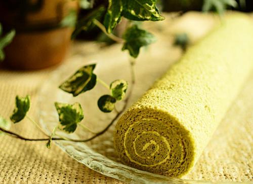 抹茶のクリームを巻き込んだ香り高いロールケーキです。