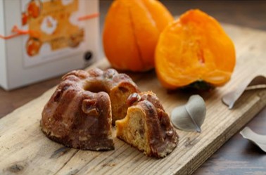 「祇園坊柿とくるみのケーキ」は、広島安芸太田産の祇園坊柿とローストしたくるみがたっぷりと使用されています。キャラメル風味で仕上げられ、食感が楽しめるクグロフ型のパウンドケーキです。大切な人への贈り物にお勧めです!