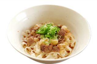 牛すじ煮込みとかつお風味の特製麺つゆがとてもマッチする一品です。ネギなどをかけるとさらにおいしく召し上がることができます。